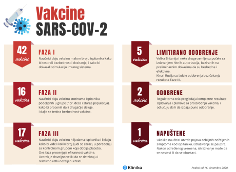 Vakcine tipično zahtevaju godine istraživanja i testiranja pre nego što mogu da se puste u promet, ali ove godine, proizvođači su u trci da naprave vakcinu u rekordnom roku. Prema poslednjim brojkama, 61 vakcina se trenutno nalazi u fazi kliničkih testiranja na ljudima, a njih 17 je stiglo u poslednje faze testiranja. Za svet je dovoljno da samo jedna bude uspešna.