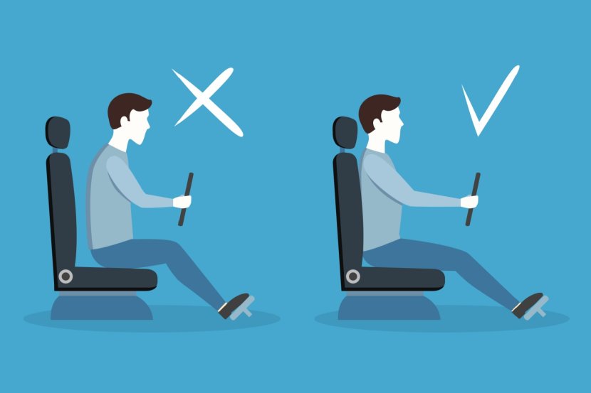 Ispravite leđa i sednite na adekvatnoj udaljenosti od volana, kako bi se u slučaju potrebe aktivirali vazdušni jastuci. Jednu ruku držite na bočnoj, a drugu na gornjoj strani volana. Nastojte da ne sedite ni predaleko ni priblizu volanu, savijanje prema napred ili unazad tokom vožnje može da dovede po pojačanog pritiska na lumbalni deo kičme, vrat, ramenima, zglobove.